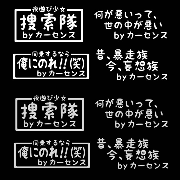 | カーセンスロゴステッカー | クロノコーポレーションステッカー | クリエイティブディレクションステッカー | セカンドイノベーションステッカー | |||