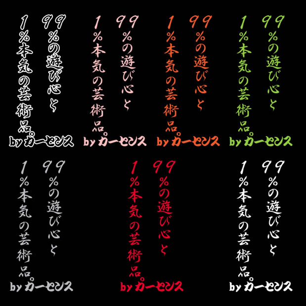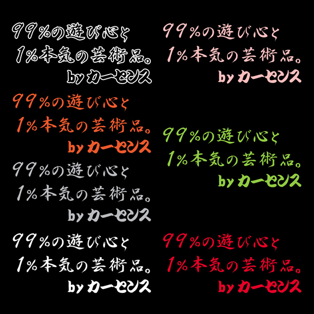 | 少年の心と大人の財力ステッカー(横) | 99%の遊び心と1%本気の芸術品ステッカー(横) | 少年の心と大人の財力ステッカー(縦) | 99%の遊び心と1%本気の芸術品ステッカー(縦) | |||